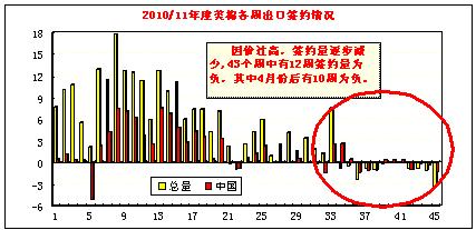 美國本年度陸地棉出口凈簽約連續(xù)十周為負(fù)