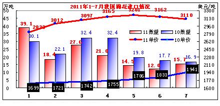 2011年7月我國進(jìn)口棉花15.7萬噸