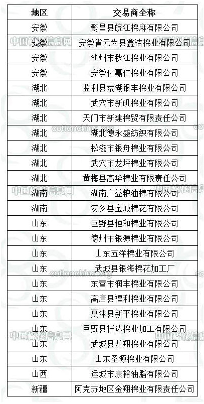 2011年度臨時收儲第十批已審核交易商來自全國6個主產(chǎn)區(qū),共計25家。