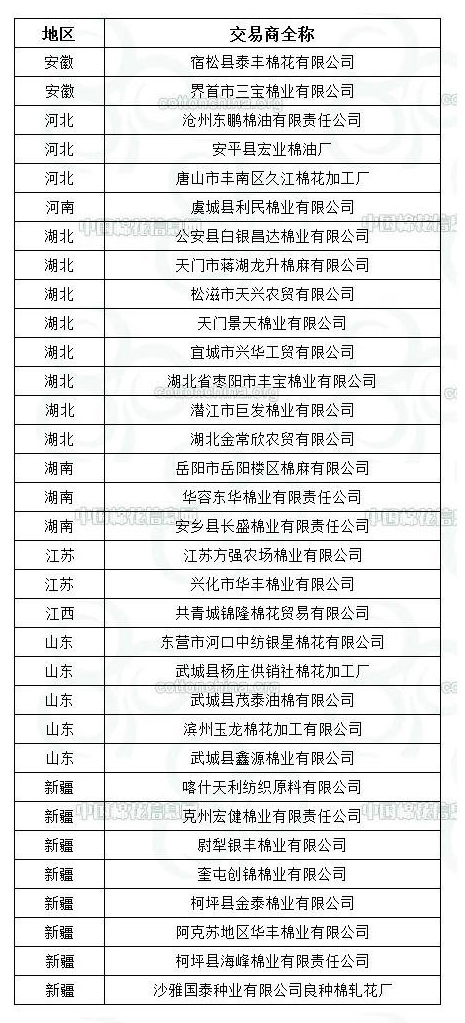錦橋紡織網(wǎng)—資訊頻道> 棉花信息> 棉花動態(tài)>正文 2011年度臨時收儲已審核交易商名單(第十三批)