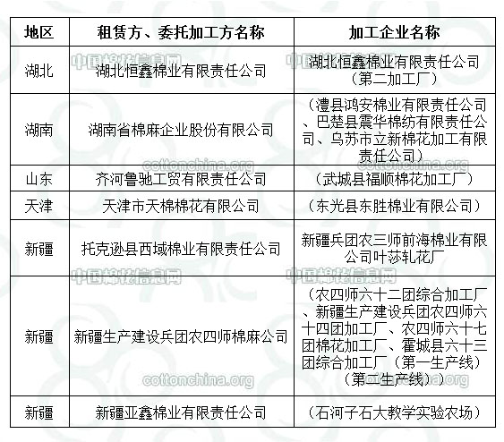 2011年度臨時收儲第四批已審核租賃、委托加工交易商來自全國5個主產(chǎn)區(qū)。