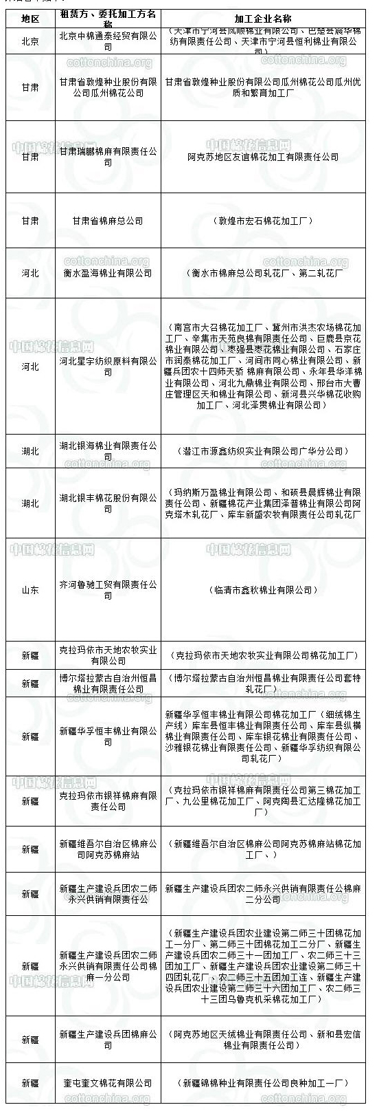 2011年度臨時(shí)收儲(chǔ)第八批已審核租賃、委托加工交易商來自全國6個(gè)主產(chǎn)區(qū)。