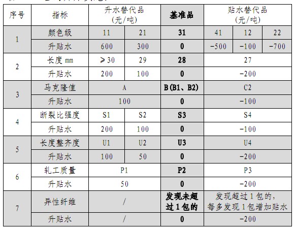 為適用2012年頒布的棉花新國家標準,鄭商所對一號棉花期貨合約及交割細則、標準倉單管理辦法相關(guān)條款進行了修改,昨日公布了修改后的一號棉花期貨合約及相關(guān)業(yè)務(wù)細則,自CF311合約開始施行。今日起,CF311合約掛盤交易。 據(jù)介紹,此次主要是對一號棉花期貨合約基準交割品作了修改。根據(jù)修改后的細則,自CF311合約起,一號棉花期貨合約基準交割品為:符合GB1103.1-2012《棉花第1部分:鋸齒加工細絨棉》規(guī)定的3128B級,且長度整齊度為U3檔,斷裂比強度為S3檔,軋工質(zhì)量為P2檔的國產(chǎn)棉花。符合GB1103.1-2012《棉花第1部分:鋸齒加工細絨棉》規(guī)定的,顏色級為11、21、41、12、22級,平均長度級為27mm、29mm及以上,長度整齊度為U1、U2、U4檔,主體馬克隆值級為A級、C級C2檔,斷裂比強度為S1、S2、S4檔,軋工質(zhì)量為P1檔、P3檔的棉花,可以替代交割。一個交割單位棉花按照顏色級和軋工質(zhì)量比例實行分級計價。有主體顏色級的棉花,升水100元/噸。無主體顏色級的棉花,以其中占比例最大的顏色級為標注顏色級。 據(jù)了解,棉花新國家標準分GB1103.1-2012《棉花第1部分:鋸齒加工細絨棉》和GB1103.2-2012《棉花第2部分:皮輥加工細絨棉》。其中,鋸齒加工細絨棉采用顏色分級指標體系,皮輥加工細絨棉仍維持品級指標體系。 一號棉花期貨合約替代交割品升貼水(見下圖):自CF311合約開始實施。倉單注銷出庫時,在復(fù)議期內(nèi),棉花顏色及因自然變異造成棉花顏色級類型下降超出上述替代品范圍的,其生忒水參照中國棉花協(xié)會2012年11月21日發(fā)布的《棉花買賣合同及一般條款》(適用于國產(chǎn)棉貿(mào)易)中“鋸齒加工細絨棉質(zhì)量差價表”執(zhí)行。