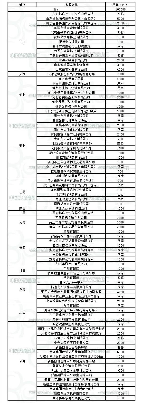 錦橋紡織網(wǎng)—資訊頻道> 棉花信息> 棉花動(dòng)態(tài)>正文 2月13日收儲(chǔ)庫(kù)點(diǎn)及數(shù)量