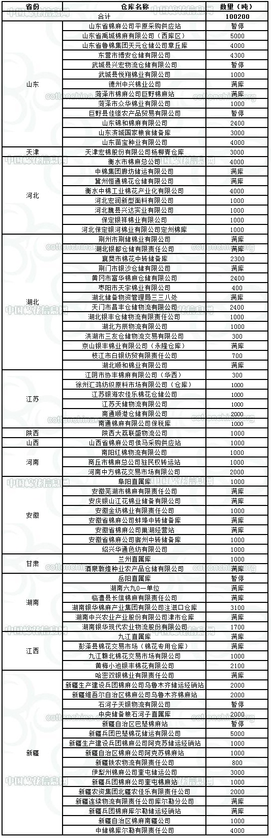 錦橋紡織網(wǎng)—資訊頻道> 棉花信息> 棉花動(dòng)態(tài)>正文 2月16日收儲(chǔ)庫點(diǎn)及數(shù)量