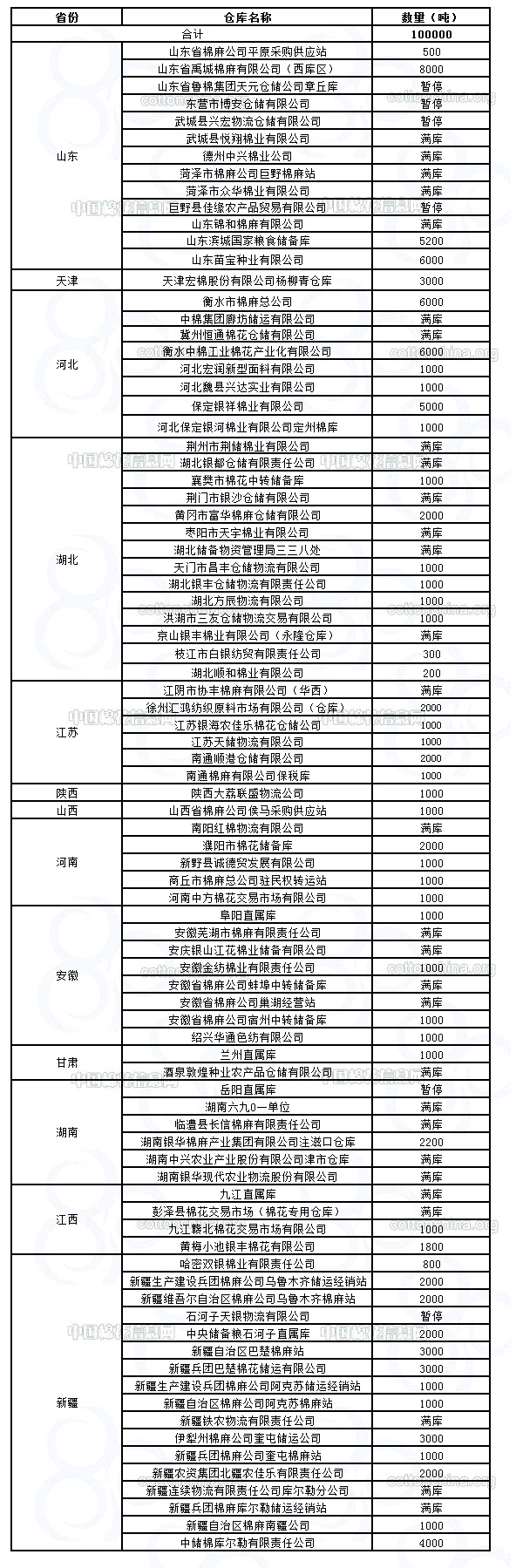 錦橋紡織網(wǎng)—資訊頻道> 棉花信息> 棉花動態(tài)>正文 2月29日收儲庫點及數(shù)量