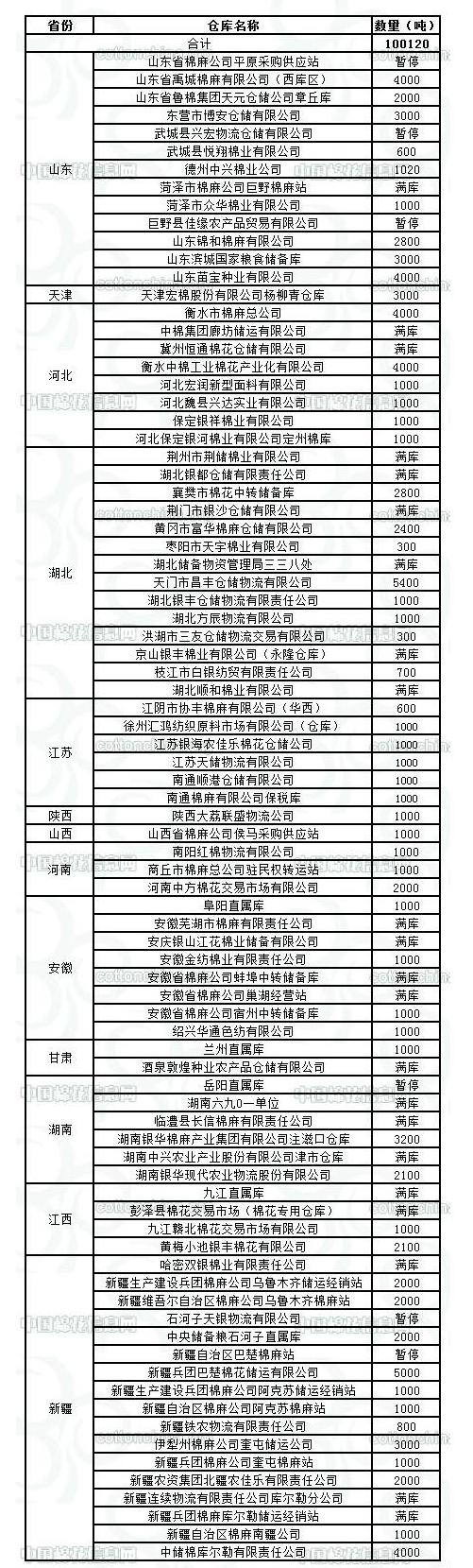 錦橋紡織網(wǎng)—資訊頻道> 棉花信息> 棉花動(dòng)態(tài)>正文 2月8日收儲(chǔ)庫點(diǎn)及數(shù)量
