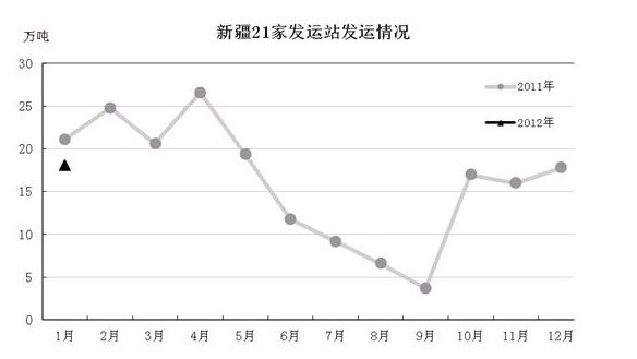 截至2011年1月底,新疆區(qū)內(nèi)21家倉庫商品棉周(中)轉(zhuǎn)庫存為61.6萬噸(不含臨時(shí)收儲(chǔ)棉花),環(huán)比減少6.5萬噸,同比減少47.3萬噸。1月份以上中轉(zhuǎn)站共通過鐵路向內(nèi)地發(fā)運(yùn)棉花18.1萬噸,環(huán)比增加0.3萬噸,同比減少3萬噸。據(jù)此推算,1月底新疆棉在途量約4.2萬噸。