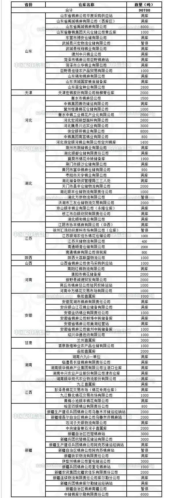 錦橋紡織網(wǎng)—資訊頻道> 棉花信息> 棉花動態(tài)>正文 3月14日收儲庫點及數(shù)量
