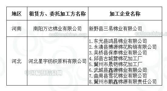 2011年度臨時收儲第九十批已審核租賃、委托加工交易商來自全國2個主產(chǎn)區(qū)。詳細(xì)名單如下: