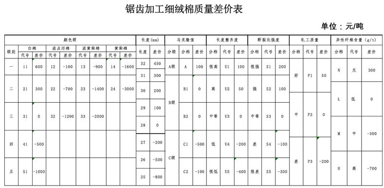 新修訂的棉花國家標(biāo)準(zhǔn)將于2013年9月1日起實(shí)施,有關(guān)部門制定關(guān)于國內(nèi)棉花貿(mào)易規(guī)則的《棉花買賣合同及一般條款》。對(duì)于新國標(biāo)和貿(mào)易條款對(duì)棉花市場(chǎng)及價(jià)格的影響眾說紛紜,根據(jù)湖南省某棉企去年加工皮棉的情況,對(duì)新國標(biāo)下湖南省棉花收儲(chǔ)和貿(mào)易形勢(shì)進(jìn)行分析。 新國標(biāo)對(duì)其的不利影響 第一,新國標(biāo)的計(jì)價(jià)體系在很多方面維持新舊標(biāo)準(zhǔn)之間的相對(duì)穩(wěn)定,但湖南省達(dá)到交儲(chǔ)標(biāo)準(zhǔn)的皮棉比例將會(huì)下降。就湖南省棉花而言,顏色級(jí)與品級(jí)相比較折算出的價(jià)格基本相當(dāng)。去年上述棉企加工的皮棉4級(jí)占94.5%,5級(jí)占5.5%,按標(biāo)準(zhǔn)級(jí)皮棉328級(jí)收儲(chǔ)價(jià)格20400元/噸、4級(jí)等級(jí)差3%、5級(jí)等級(jí)差13%計(jì)算,加權(quán)平均價(jià)格19737元/噸。按顏色級(jí)來劃分去年上述棉企加工的皮棉中21級(jí)占0.03%,31級(jí)占9.85%,41級(jí)占20.88%,12級(jí)占0.47%,22級(jí)占54.91%,32級(jí)占13.83%,23級(jí)占0.03%。按標(biāo)準(zhǔn)級(jí)31級(jí)收儲(chǔ)價(jià)20400元/噸,根據(jù)《鋸齒加工細(xì)絨棉質(zhì)量差價(jià)表》(以下簡(jiǎn)稱差價(jià)表,詳見附件),21、31、41、12、22、32、23級(jí)的等級(jí)差價(jià)分別300、0、-500、-100、-700、-1200、-1400元/噸計(jì)算,加權(quán)平均價(jià)格19744元/噸,較原品級(jí)標(biāo)準(zhǔn)結(jié)算價(jià)格提高7元/噸。對(duì)交儲(chǔ)而言,原國標(biāo)5級(jí)以下不能交儲(chǔ),比例是5.5%,若新國標(biāo)32級(jí)以下不能交儲(chǔ),比例達(dá)到13.86%,湖南省不符合交儲(chǔ)標(biāo)準(zhǔn)的棉花比例(僅指級(jí)別)將上升8.36%。 第二,新國標(biāo)對(duì)棉花長度的要求由原來的長度差價(jià)率改為固定級(jí)差,湖南省棉花的價(jià)格將隨之下降。去年上述棉企加工的皮棉長度30mm占1.41%、29mm占51.3%、28mm占46.42%、27mm占0.87%,按收儲(chǔ)價(jià)格20400元/噸,原品級(jí)標(biāo)準(zhǔn)長度結(jié)算是每毫米1%長度差價(jià)率,加權(quán)平均計(jì)算,長度差價(jià)是112元/噸,按顏色級(jí)結(jié)算價(jià)格體系,長度30mm、29mm、28mm、27mm、26mm的固定差價(jià)分別200、100、0、-200、-500元/噸,加權(quán)平均計(jì)算,長度差價(jià)52元/噸,較原品級(jí)結(jié)算體系計(jì)算的長度差價(jià)112元/噸減少60元/噸。 此外,軋工質(zhì)量作為計(jì)算棉花質(zhì)量差價(jià)的指標(biāo),南方空氣濕度大、籽棉水分較高,預(yù)計(jì)會(huì)出現(xiàn)部分加工質(zhì)量為“差”的棉花,同時(shí)湖南省棉花采摘交售過程中使用編織袋較多,異性纖維含量也會(huì)對(duì)棉花價(jià)格造成影響。 新國標(biāo)對(duì)其的有利影響 在標(biāo)準(zhǔn)級(jí)皮棉收儲(chǔ)價(jià)格不變的情況下,皮棉收儲(chǔ)價(jià)格總體將較去年有所提高,這主要依靠斷裂比強(qiáng)度和馬克隆值級(jí)。根據(jù)差價(jià)表,斷裂比強(qiáng)度S1、S2、S3、S4、S5級(jí)等級(jí)差價(jià)分別200、100、0、-100、-300元/噸,湖南省皮棉斷裂比強(qiáng)度均在S3級(jí)以上,在結(jié)價(jià)時(shí)價(jià)格將相應(yīng)提高。以上述棉企去年加工的皮棉為例,S1占8.5%,S2占51.7%,S3占39.7%,S4占0.1%,加權(quán)平均計(jì)算,斷裂比強(qiáng)度加價(jià)69元/噸。另外,新國標(biāo)差價(jià)表規(guī)定,馬克隆值A(chǔ)、B1、B2、C2、C1級(jí)差價(jià)分別100、0、0、-100、-500元/噸,去年上述棉企加工的皮棉中馬克隆值A(chǔ)級(jí)占57.4%、B1級(jí)占11.0%、B2級(jí)占25.9%、C2級(jí)占1.7%、C1級(jí)占4.0%,加權(quán)平均計(jì)算,馬克隆值級(jí)加價(jià)35元/噸。需要說明的是,正常年景湖南省棉花馬克隆值以C2級(jí)居多,去年是1個(gè)特例,由于采摘期雨水偏多、光照偏少,中后期棉花成熟度普遍不夠,導(dǎo)致馬克隆值偏小,出現(xiàn)較多的A級(jí)。 長度整齊度指標(biāo)對(duì)棉花價(jià)格影響不大。按新國標(biāo)差價(jià)表,長度整齊度U1、U2、U3、U4、U5,差價(jià)分別100、50、0、-200、-400元/噸,去年上述棉企加工的皮棉長度整齊度U2檔占15.9%、U3檔占83.4%、U4占0.70%,加權(quán)平均計(jì)算,長度整齊度指標(biāo)加價(jià)7元/噸,主要原因是正常年份湖南省棉花長度整齊度以U3檔為主,交儲(chǔ)沒有差價(jià)。 綜上所述,新國標(biāo)差價(jià)表顏色級(jí)、長度、軋工質(zhì)量、馬克隆值、斷裂比強(qiáng)度、長度整齊度、異性纖維7個(gè)品級(jí)檢驗(yàn)指標(biāo),剔除去年未單獨(dú)公檢的軋工質(zhì)量和異性纖維,去年上述棉企加工的皮棉按品級(jí)檢驗(yàn)(以標(biāo)準(zhǔn)級(jí)20400元/噸計(jì)算),加權(quán)平均價(jià)格19849元/噸(未考慮馬克隆值),按新國標(biāo)顏色級(jí)檢驗(yàn)的加權(quán)平均價(jià)格19907元/噸,顏色級(jí)較品級(jí)結(jié)算價(jià)格提高58元/噸。但據(jù)了解,這一指標(biāo)提高的幅度低于全國平均水平,如何提高棉花質(zhì)量進(jìn)而提高效益將是湖南棉企需要研究的重要課題。據(jù)悉,近期中國儲(chǔ)備棉管理總公司將出臺(tái)關(guān)于2013年度收儲(chǔ)棉花等級(jí)及質(zhì)量差價(jià)的細(xì)則,對(duì)部分等級(jí)的棉花差價(jià)進(jìn)行調(diào)整,相信調(diào)整后的