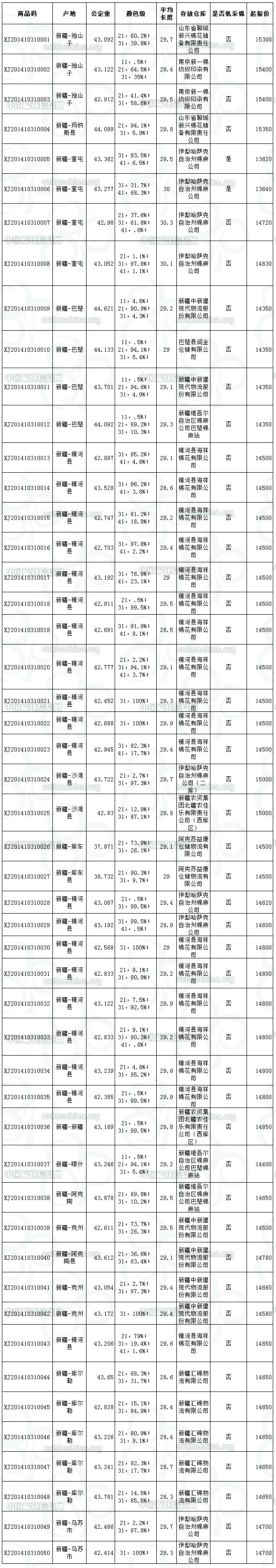 各交易商: 定于10月31日推出新疆棉競賣資源2147.942噸。其中,手摘棉2061.303噸(最低起報價14350元/噸),機(jī)采棉86.639噸(最低起報價13620元/噸)。當(dāng)日總競賣資源中增加4批內(nèi)地庫資源173.225噸,為手摘棉(最低起報價15300元/噸)。相關(guān)詳細(xì)數(shù)據(jù)見附件。具體庫點如下:
