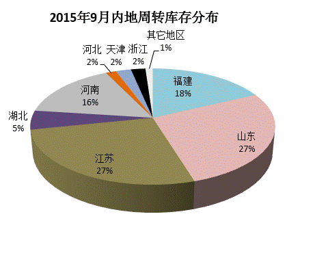 據(jù)對內(nèi)地180家棉花倉庫庫存分析,當(dāng)月庫存在5萬噸以上的省份只有兩個,分別是山東5.2萬噸,江蘇5.1萬噸。其次福建庫存3.5萬噸,河南3萬噸,湖北1萬噸,其他省份則在萬噸以下。從庫存變化看,湖北省庫存量下降最明顯,由8月底的6.7萬噸降至1萬噸,下降5.7萬噸,降幅84.7%,另安徽、甘肅、江西、上海庫存為零。
