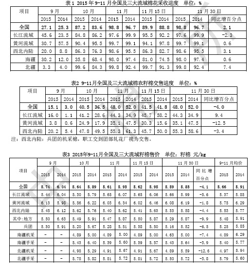 中棉所:11月底新棉采收、交售和價(jià)格監(jiān)測(cè)報(bào)告