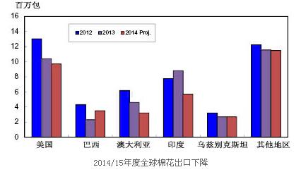 2014/15年度全球棉花出口下降