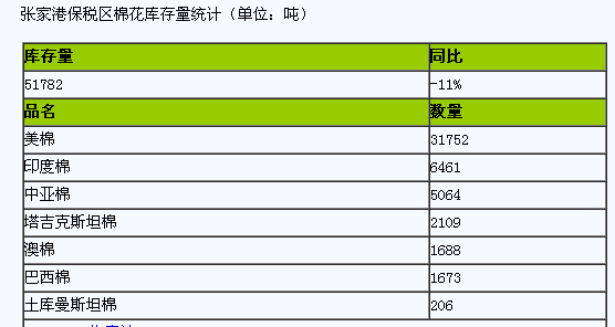 本周張家港保稅區(qū)棉花庫存量統(tǒng)計(6月8-14日)