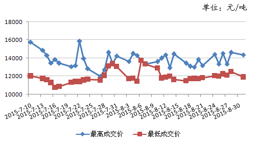 截至8月31日儲備棉每日成交最高、最低價格走勢圖