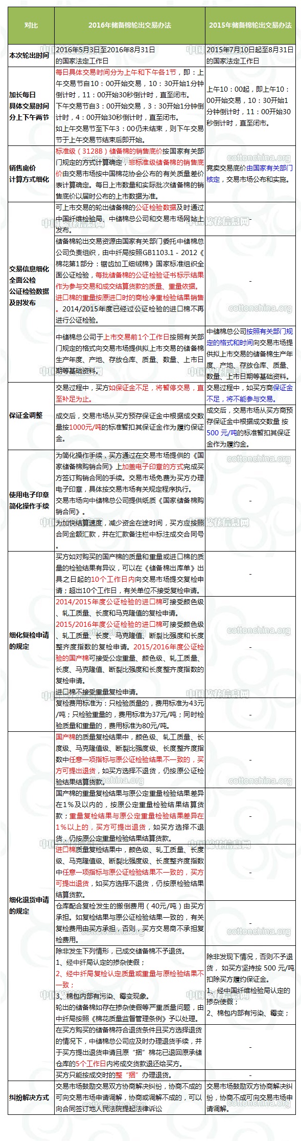 2016年與2015年儲(chǔ)備棉輪出交易辦法內(nèi)容對(duì)比