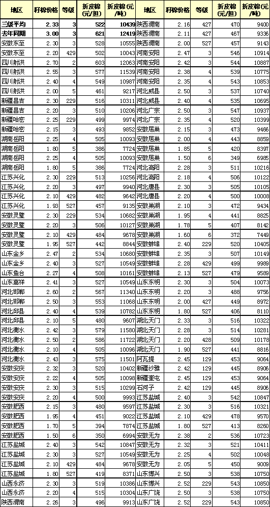 12月15日各地新棉收購