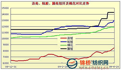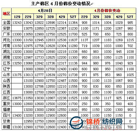 【錦橋專稿】在金融危機(jī)對(duì)實(shí)體經(jīng)濟(jì)影響還在繼續(xù)漫延、政策面未見新的或有現(xiàn)實(shí)意義的刺激方案的情況下,4月份棉價(jià)大幅波動(dòng)、化纖原料全線飄紅,使剛剛啟動(dòng)的紡企經(jīng)濟(jì)運(yùn)行面臨過早的原料成本急劇上升的新壓力。 一、4月份棉花市場(chǎng)基本情況 1.受流通資源減少,國(guó)內(nèi)現(xiàn)貨棉價(jià)大漲上千元。受連續(xù)3期收儲(chǔ)、進(jìn)口聚減、消耗增加,國(guó)內(nèi)棉花可流通資源明顯減少。從消費(fèi)量看,消費(fèi)量逼近全年總產(chǎn)。2009年1季度全國(guó)產(chǎn)紗480.2萬噸,同比增長(zhǎng)7.7%,本年度(2008年9月1日-2009年3月,下同)累計(jì)產(chǎn)紗1231萬噸,折原棉消費(fèi)722萬噸,同比增加4.7%,占當(dāng)年全國(guó)棉花總產(chǎn)量749.2萬噸的96.4%。從收儲(chǔ)看,收儲(chǔ)總量占當(dāng)年總產(chǎn)的1/3以上。連續(xù)3期共收儲(chǔ)272萬噸,占當(dāng)年棉花總產(chǎn)的36.3%,即消費(fèi)量和收儲(chǔ)量就超過本年度棉花總產(chǎn)的32.7%。從進(jìn)口看,棉花進(jìn)口聚減,難以滿足市場(chǎng)所需。2009年1季度棉花進(jìn)口26.98萬噸,同比下降49%,本年度進(jìn)口73.9萬噸,同比下降44.2%,占本年度消費(fèi)總量?jī)H10.2%,且大多為一般貿(mào)易和進(jìn)料加工貿(mào)易,保稅倉(cāng)庫進(jìn)口明顯減少。2009年1季度保稅倉(cāng)庫進(jìn)口7.7萬噸,同比下降77%,占進(jìn)口總比28.5%,比重同比減少34.7個(gè)百分點(diǎn)。 由于可流通資源大幅減少,棉企積極采購(gòu)和棉商惜售加速棉價(jià)上漲。4月份棉價(jià)平均漲上千元,平均漲幅達(dá)8.5%以上,是自2008年12月份以來漲幅最大的1個(gè)月。4月份各地區(qū)棉價(jià)變動(dòng)和328級(jí)標(biāo)準(zhǔn)棉走勢(shì)圖如下:
