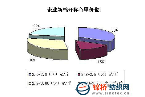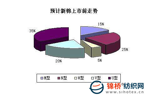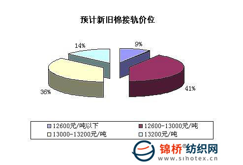 4.新棉上市將推遲,半數(shù)企業(yè)認(rèn)為開(kāi)秤價(jià)達(dá)到2.9-3.2元/斤。 截止7月底被調(diào)查企業(yè)中48%的企業(yè)認(rèn)為新棉上市時(shí)間較2008年同期會(huì)推遲;35%的認(rèn)為會(huì)提前;17%的認(rèn)為將基本保持一致。其中一半以上企業(yè)認(rèn)為新棉上市時(shí)間在9月中下旬,一小部分認(rèn)為在9月初和10月中旬。調(diào)查顯示,企業(yè)對(duì)新棉開(kāi)稱(chēng)價(jià)位表現(xiàn)為幾檔,33%的企業(yè)接受新棉開(kāi)稱(chēng)價(jià)格在2.6-2.8元/斤;30%的心里價(jià)位在2.9-3.00元/斤;22%的認(rèn)同價(jià)位在3.00-3.20元/斤;15%的認(rèn)同價(jià)位在2.8-2.9元/斤的。由此中上的收購(gòu)價(jià)格符合大多企業(yè)心理。 另外離新棉集中上市還有不到2月時(shí)間,新舊棉花在什么價(jià)位接軌也是企業(yè)所關(guān)注的,被調(diào)查企業(yè)中有41%的企業(yè)認(rèn)為新舊棉花接軌價(jià)位在12600-13000元/噸;36%的認(rèn)為在13000-13200元/噸;14%的認(rèn)為將在13200元/噸以上;9%的認(rèn)為在12600元/噸以下??梢?jiàn)棉花企業(yè)對(duì)后市比較樂(lè)觀(guān)。