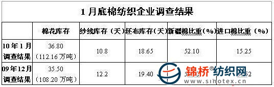 1.棉紡企業(yè)棉花庫存情況:2009年1-2月國內(nèi)棉紡企業(yè)棉花采購渠道放寬,個(gè)別地區(qū)甚至形成買方市場(chǎng)。隨1初國家有關(guān)部門189.4萬噸棉花進(jìn)口配額迅速下發(fā),一些雖然采購新疆棉卻“遠(yuǎn)水不解近渴”的棉紡廠只得到保稅區(qū)看大貨,進(jìn)口外棉,一些在2009年9、10月提前簽合同、操作進(jìn)口的用棉企業(yè)、流通企業(yè)拿到進(jìn)口配額后也積極使用配額,新疆棉運(yùn)輸瓶頸雖然無法有效解決,但是優(yōu)先運(yùn)輸一些大中型用棉企業(yè)的棉花,使內(nèi)地市場(chǎng)無法形成集中采購、批量運(yùn)輸?shù)那闆r,鄭棉期貨、電子撮合的下跌也激起涉棉企業(yè)采購倉單的熱情,部分大中型廠棉花補(bǔ)庫工作也接近尾聲,引起內(nèi)地部分囤棉企業(yè)恐慌,據(jù)悉,目前電子盤倉單主要由新疆、湖北、山東等地棉企生成。據(jù)調(diào)結(jié)果顯示,49.5%企業(yè)增加棉花庫存,17.4%企業(yè)減少,另33.1%企業(yè)與上月基本持平;綜合平均棉花庫存由12月底的35.50天上升至1月底的36.80天,折合棉花工業(yè)庫存量由108.20萬噸增加至112.16萬噸。各企業(yè)庫存分化繼續(xù)加大,一些大中型棉企庫存在2個(gè)月左右,中小棉紡企業(yè)最低僅15-16天。