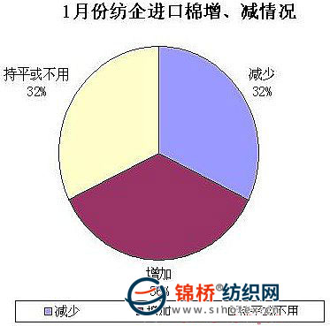 3.棉紡企業(yè)進(jìn)口棉占總用棉比重:據(jù)悉,雖然有關(guān)部門表示將在1月中旬前“足額”發(fā)放進(jìn)口棉花配額,但是據(jù)了解除89.4萬噸關(guān)稅內(nèi)棉花進(jìn)口配額已經(jīng)全部下發(fā)外,100萬噸滑準(zhǔn)關(guān)稅配額中僅少量加工貿(mào)易配額下發(fā)給少部分企業(yè),大多數(shù)廠家并沒有拿到,因此1月棉花進(jìn)口并未“井噴”,業(yè)內(nèi)傳言國家將在4月增發(fā)100萬噸滑準(zhǔn)關(guān)稅棉花進(jìn)口配額,未得到有關(guān)部門證明,認(rèn)為很可能是第1批剩余的滑準(zhǔn)關(guān)稅配額補發(fā),不是啟動第2批配額。1月進(jìn)口棉使用比例略上升,主要是部分提前操作的涉棉企業(yè)趕在棉花抵港前拿到進(jìn)口配額,組織進(jìn)口,庫存進(jìn)口棉的棉紡廠也加大進(jìn)口棉使用力度。被調(diào)查企業(yè)中,34.5%減少進(jìn)口棉用量,18%增加,46.6%持平或不用。紡企綜合使用進(jìn)口棉比重15.25%,較上月增加0.73個百分點。
