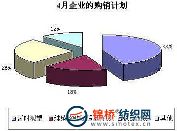認(rèn)為上漲的原因:國(guó)內(nèi)棉花庫存越來越少,而2010年均價(jià)明顯高于歷史上較好年景。而且雖然2010年棉價(jià)走勢(shì)和環(huán)境比較接近2003年,但是還是很區(qū)別于2003年,后市資源嚴(yán)重匱乏,相信不會(huì)出現(xiàn)2003年急劇下跌情況。同時(shí)近期內(nèi)看國(guó)家政策并不想干預(yù)棉花市場(chǎng),因此從供需來看,棉價(jià)仍然有上漲需求,部分企業(yè)認(rèn)為上漲空間在100-200元/噸。同時(shí)新疆棉外運(yùn)逐步好轉(zhuǎn),但是出疆棉價(jià)格將居高不下,主要原因是前期疆內(nèi)皮棉幾經(jīng)棉商轉(zhuǎn)手,中轉(zhuǎn)費(fèi)用高企,導(dǎo)致成本增幅較大。因此成本論下棉價(jià)有上漲需求。 認(rèn)為平穩(wěn)的原因:近日國(guó)內(nèi)人民幣升值是1個(gè)潛在的危險(xiǎn)信號(hào),對(duì)于紡織出口非常不利,隨著人民幣升值,紡織品出口前景將呈現(xiàn)恢復(fù)慢,甚至傳導(dǎo)至下游市場(chǎng)將出現(xiàn)紡織市場(chǎng)不景氣。紡織需求將不會(huì)有大的突破,另外3月棉價(jià)已經(jīng)上漲到一定歷史高度,預(yù)計(jì)后期紡織很難承載更高漲幅。另外從供需面來看,新疆棉外運(yùn)阻力已經(jīng)恢復(fù)正常,供需失衡局面也得到扭轉(zhuǎn),因此維持棉市平穩(wěn)將比較穩(wěn)妥。 5.企業(yè)購(gòu)銷計(jì)劃較不積極資金情況普遍較好 (1)企業(yè)購(gòu)銷計(jì)劃:后市企業(yè)下一步銷售計(jì)劃暫不積極,多數(shù)企業(yè)認(rèn)為4月先觀望一陣再說。(如下圖)