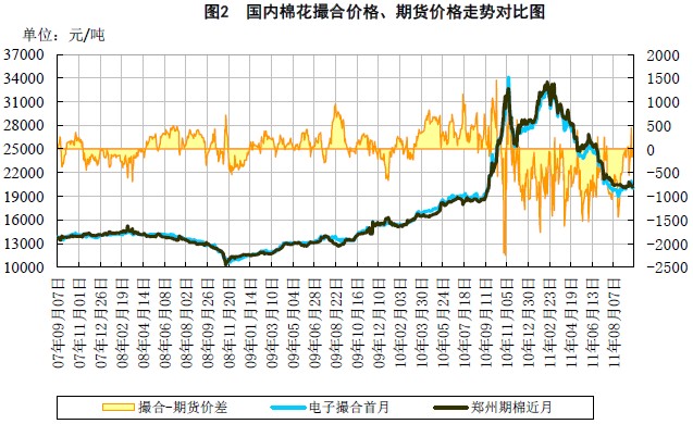 在收儲(chǔ)期間,國(guó)內(nèi)棉價(jià)圍繞20000附近窄幅震蕩的可能性較大。建議在臨時(shí)收儲(chǔ)有效期內(nèi),可考慮在19000-23000區(qū)間內(nèi)進(jìn)行區(qū)間操作。若期棉價(jià)格跌至19000附近,可逢低買入多單,滾動(dòng)操作。從棉花歷年季節(jié)性價(jià)格變化看,9月、10月現(xiàn)貨市場(chǎng)棉價(jià)可能在短暫僵持后逐步回落,11月份新棉大量上市,市場(chǎng)價(jià)格相對(duì)走低,12月中旬開始,棉價(jià)逐漸探底回升。