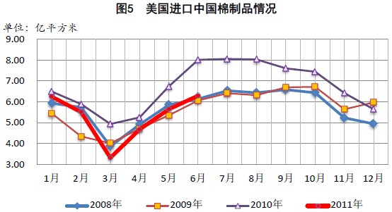 2011年6、7、8三個(gè)月人民幣對(duì)美元升值幅度分別為0.2%、0.44%、0.77%,從8月11日起,人民幣兌美元匯率進(jìn)入“6.3時(shí)代”。人民幣加速升值不利于紡織企業(yè)接單,不利于棉花市場(chǎng)轉(zhuǎn)暖。