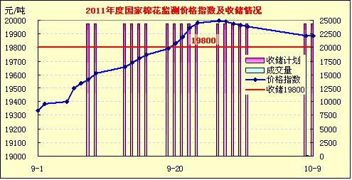 10月9日計(jì)劃收儲(chǔ)24300噸,實(shí)際成交290噸,均價(jià)9800元成交。累計(jì)成交380噸。