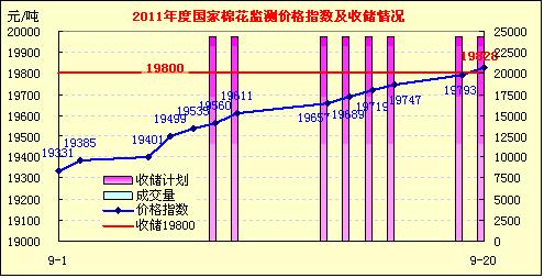 9月20日,當(dāng)日共計24300噸的棉花收儲計劃無成交。已連續(xù)八個交易日收儲為零,且今日328級棉價指數(shù)已超過19800元的收購價。
