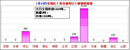 按倉儲(chǔ)庫收儲(chǔ)匯總:當(dāng)日收儲(chǔ)量較多的地區(qū)依舊為:山東庫收儲(chǔ)1110噸,河北360噸,江西180噸,浙江150噸。截止1月19日,新疆庫累計(jì)收儲(chǔ)151.86萬噸,占61.4%、湖北28.16萬噸,占11.4%;山東23.14萬噸,占9.4%、河北14.90萬噸,占6.0%、湖南80550噸,占3.3%等。