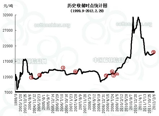 2012年國家提高糧食最低收購保護(hù)價,其中白小麥、紅小麥、混合麥價格統(tǒng)一提高到102元/50公斤,即2040元/噸,平均上調(diào)幅度為9%。以此為基礎(chǔ),按照1:10的麥棉比價推算,新年度棉花臨時收儲價正是20400元/噸,較上年度的19800元/噸提高600元/噸,上調(diào)幅度3%。