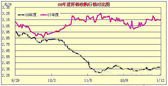 08年11月28日-09年1月13日國內(nèi)棉花現(xiàn)貨行情