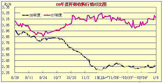 08年11月28日-09年1月6日國(guó)內(nèi)棉花現(xiàn)貨行情
