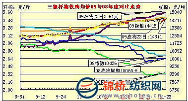 11月23日計劃拋售2006、2007年度儲備棉16084噸,全部成交;平均等級3.79,較昨上一日高0.05,平均長度29.03,較上一日高0.07;加權成交價15320元/噸,較上一日漲346元,折328級成交價為15524元/噸,較上一日漲314元。當日328級均價15507元/噸,漲440元,最高價15620元,最低15340元;329級均價15183元/噸,最高15640元,最低14860元;429級成交均價15327元/噸,漲334元,最高15620元,最低15000元。截止11月23日,累計成功拋售儲備棉2166721噸,其中2008年度儲備棉1507029噸,2003-2007年度棉花659692噸 ;當日有342家交易商參與競賣,有46家企業(yè)最終成交,當日推出資源總捆數81捆,實際成交81捆。