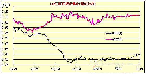 08年12月31日-09年2月19日國(guó)內(nèi)棉花現(xiàn)貨行情