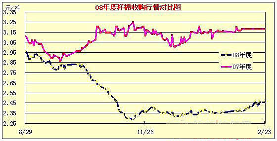 08年12月31日-09年2月23日國(guó)內(nèi)棉花現(xiàn)貨行情