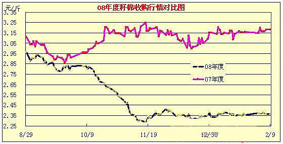 08年12月31日-09年2月9日國(guó)內(nèi)棉花現(xiàn)貨行情