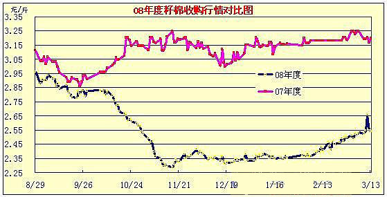 09年2月2日-09年3月17日國(guó)內(nèi)棉花現(xiàn)貨行情