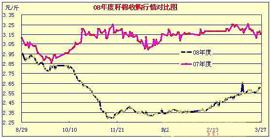 09年2月27日-09年3月27日國(guó)內(nèi)棉花現(xiàn)貨行情