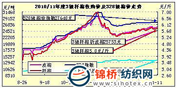 錦橋紡織網(wǎng)—資訊頻道> 棉花信息> 棉花現(xiàn)貨>正文 國內(nèi)棉花現(xiàn)貨行情(11-1-11)