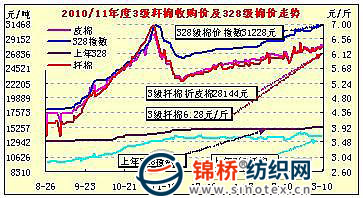 錦橋紡織網(wǎng)—資訊頻道> 棉花信息> 棉花現(xiàn)貨>正文 國內(nèi)棉花現(xiàn)貨行情(11-3-10)