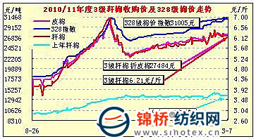 錦橋紡織網(wǎng)—資訊頻道> 棉花信息> 棉花現(xiàn)貨>正文 國內(nèi)棉花現(xiàn)貨行情(11-3-7)