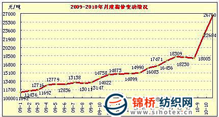 中國棉花價格指數(shù)行情——本月漲4000余元(10-10-29)
