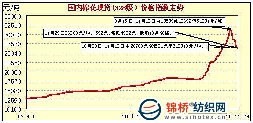 中國棉花價格指數(shù)行情(10-11-29)