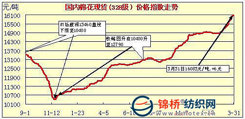 中國棉花價格指數(shù)行情(3-31)