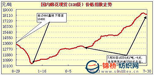 中國棉花價格指數(shù)行情——持續(xù)上漲棉價7月小幅回落(10-7-30)