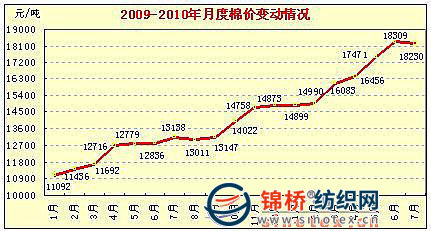 錦橋紡織網(wǎng)—資訊頻道> 棉花信息> 棉花指數(shù)>正文 中國棉花價(jià)格指數(shù)行情——持續(xù)上漲棉價(jià)7月小幅回落(10-7-30)